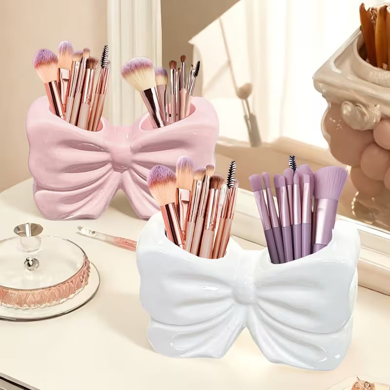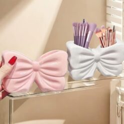 Add a touch of elegance to your vanity with this bow design vanity brush organizer holder. Perfect for keeping your cosmetic brushes neatly arranged, it ensures easy access while maintaining a clean and stylish makeup space.